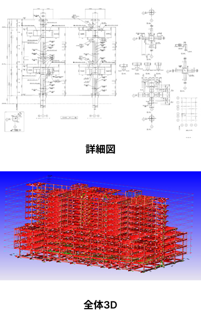 大手商社や鉄骨加工業者から建物全体の骨組みを表した構造設計図をいただき、施工区分や構造的な注意点等の指示をヒアリングします。